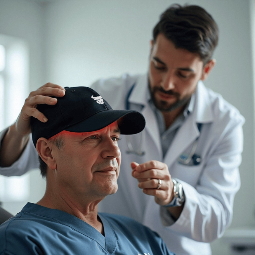 Você não precisa de consulta médica, exames caros ou medicamentos prescritos para usar o Boné Toro Red Light™.