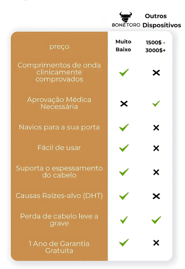 O Boné Toro™ oferece acesso direto à tecnologia de ponta para crescimento capilar — resultados premium a um preço drasticamente menor.
